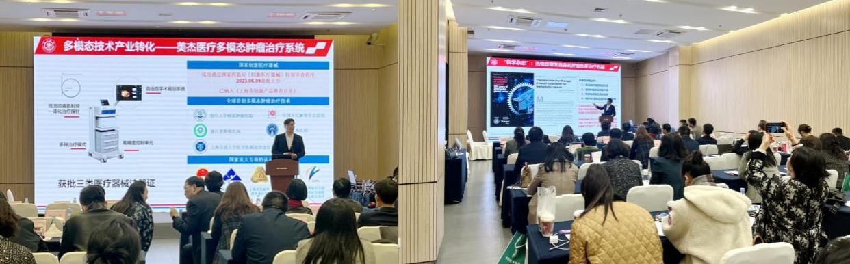上海交通大学生物医学工程学院副院长、研究员,美杰医疗董事长孙建奇应邀在大会论坛上发表了《源于临床需求的创新医疗器械成果转化——多模态肿瘤治疗系统》主题演讲。