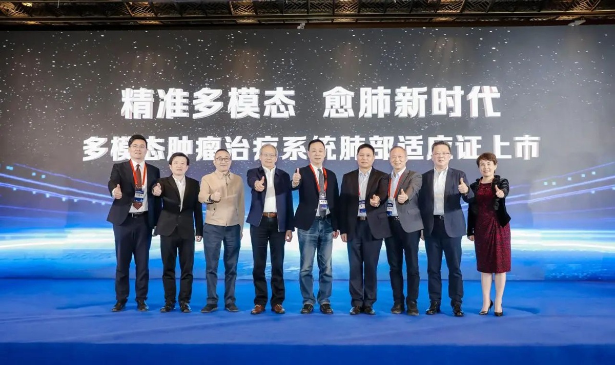▲解放军总医院肖越勇教授、同济大学附属东方医院翟博教授、郑州大学第一附属医院韩新巍教授、海军军医大学附属第一医院杨继金教授、复旦大学附属肿瘤医院李文涛教授、海军军医大学第二附属医院董伟华教授、国药控股医疗器械有限公司董事长王怡然先生、上海交大生物医学工程学院副院长、美杰医疗董事长孙建奇教授,美杰医疗CEO彭洪澜女士共同见证多模态肿瘤治疗系统肺部适应证上市
