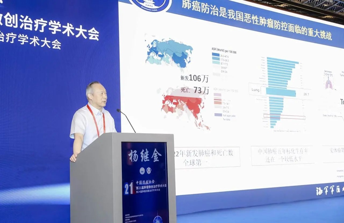 多模态肿瘤治疗系统肺适应证的正式获批上市,标志着中国原创技术为突破肺癌治疗禁区提供了新利器。中国医学科学院学部委员、上海交通大学讲席教授徐学敏在大会报告中展示了以多模态肿瘤治疗技术为代表的介入免疫治疗发展新趋势,局部微创精准根治与长效免疫协同,有望为临床带来全新的抗癌路径与突破。美杰医疗将依托多模态肿瘤治疗技术平台,持续开拓介入免疫前沿领域,为患者带来更微创、精准、长效的治疗方案,为全球肺癌治疗贡献中国智慧!