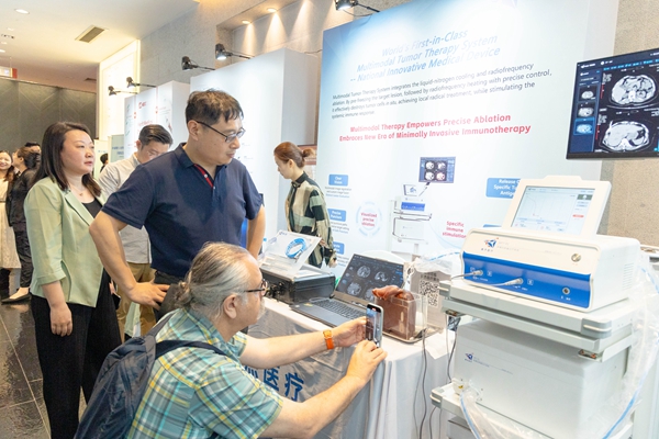 国内外专家对多模态创新技术通过局部治疗,释放抗原,激发自体抗肿瘤免疫效应所带来的长期治疗获益表达了浓厚的兴趣,纷纷与美杰医疗展台的技术专家进行了解和探讨,并期待开展进一步的临床、科研合作。